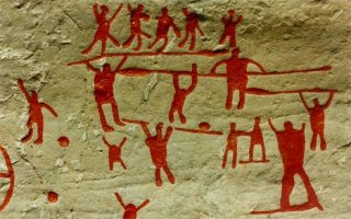 ------------------------------ Felsritzungen sind besonders im südlichen Schweden in großer Zahl verbreitet, vereinzelt auch in Norwegen. Hier wurden die Ritzungen in den anstehenden blanken Fels gearbeitet. Fast immer wurden dafür Stellen ausgesucht, die vom Gletschereis blank poliert worden sind. Anders als im weiter westlich gelegenen Raum der Megalithkultur, sind hier gegenständliche und figürliche Darstellungen von großer Kraft und Dynamik zu finden. (In einem späteren Beitrag wird sich zeigen, daß die schwedischen Felsritzungen in Form und Inhalt denen in der Sahara, in Amerka und weiteren Orten der Welt verblüffend ählich sind.) Beim heutigen Tanum, wo große Flächen blanken Felsens mit Ritzungen versehen sind, ist zu erkennen. dass es sich um eine größere, ausgedehnte Anlage handelt. (Druidenskizze) -----------------------------------------------------------------------------------
